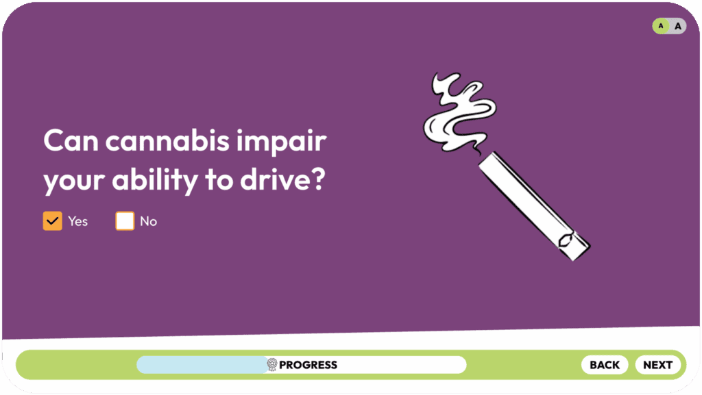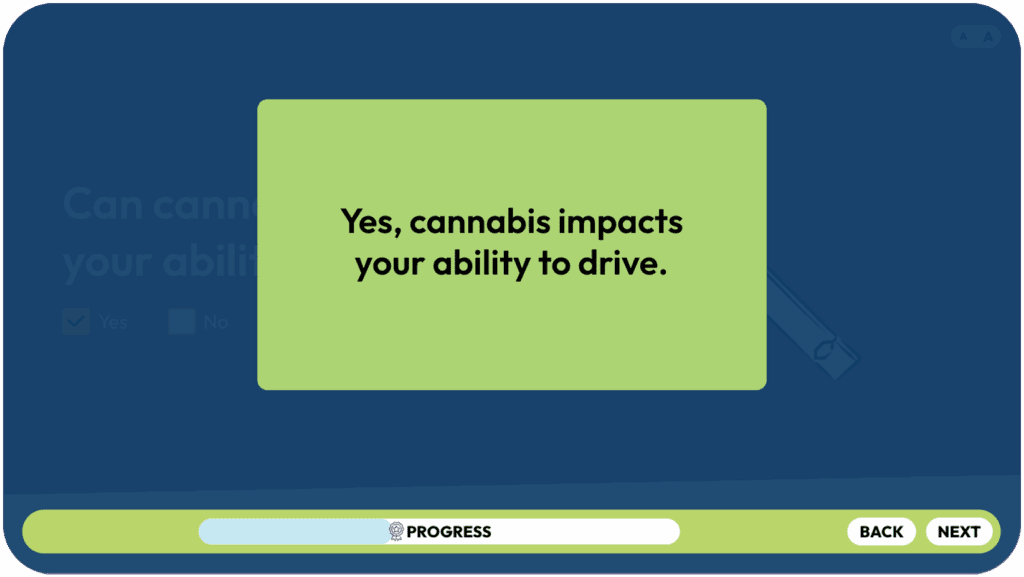 We’re going to watch a quick video about how cannabis impacts your ability to drive.