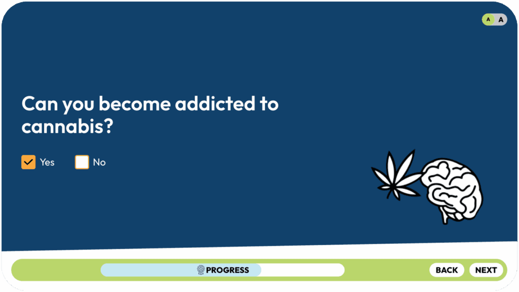 Just before we get to that, we have a quick quiz: Can you become addicted to cannabis? Yes or No?