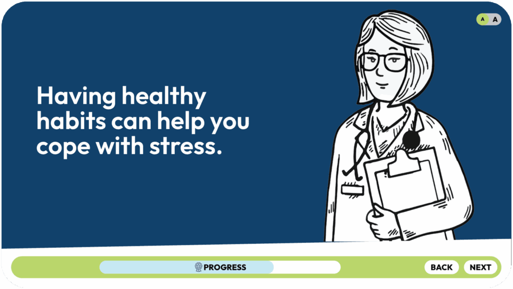 Having healthy habits can help you cope with stress. Think about how you can incorporate healthy habits into your daily routine, such as mindful deep breathing, hydration, sleep, limiting social media consumption and by participating in physical activity.