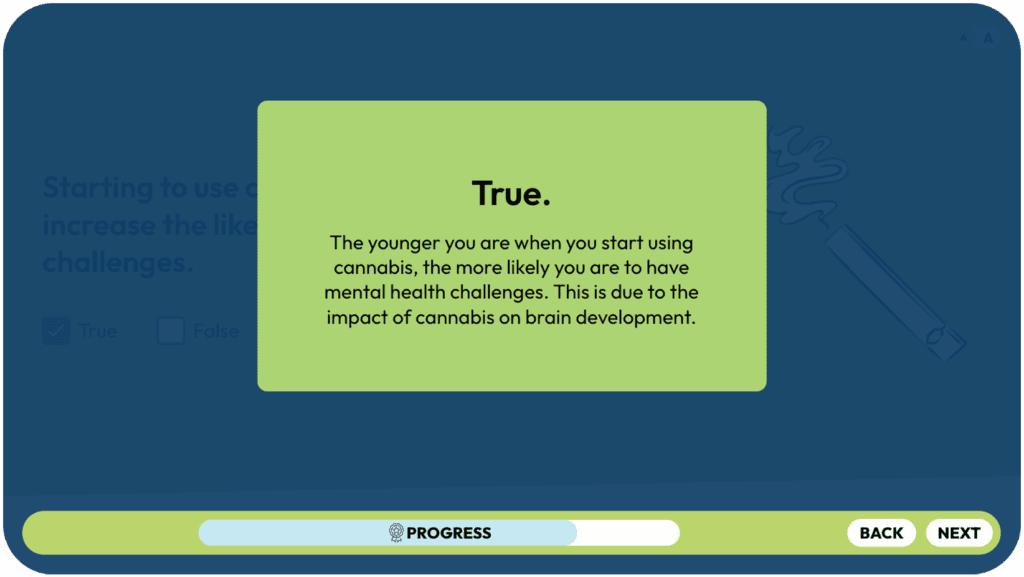 True or False: Starting to use cannabis at a younger age can increase the likelihood of mental health challenges.