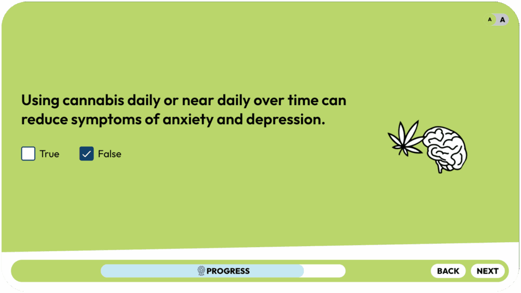 True or False: Using cannabis daily or near daily over time can reduce symptoms of anxiety and depression.