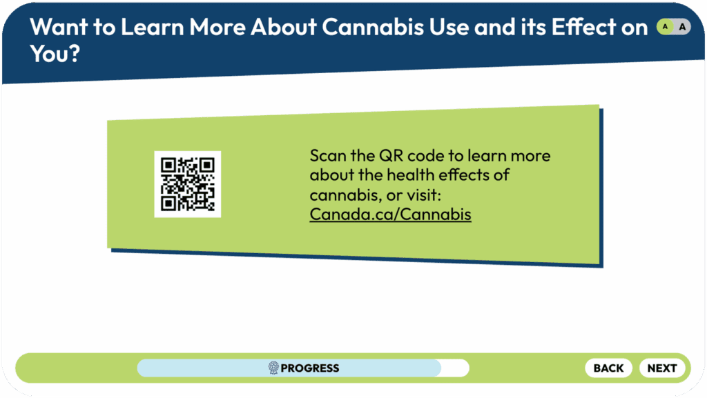 Want to learn more about cannabis use and its effects? Scan the QR code to learn more about the health effects of cannabis, or visit: Canada.ca/Cannabis.