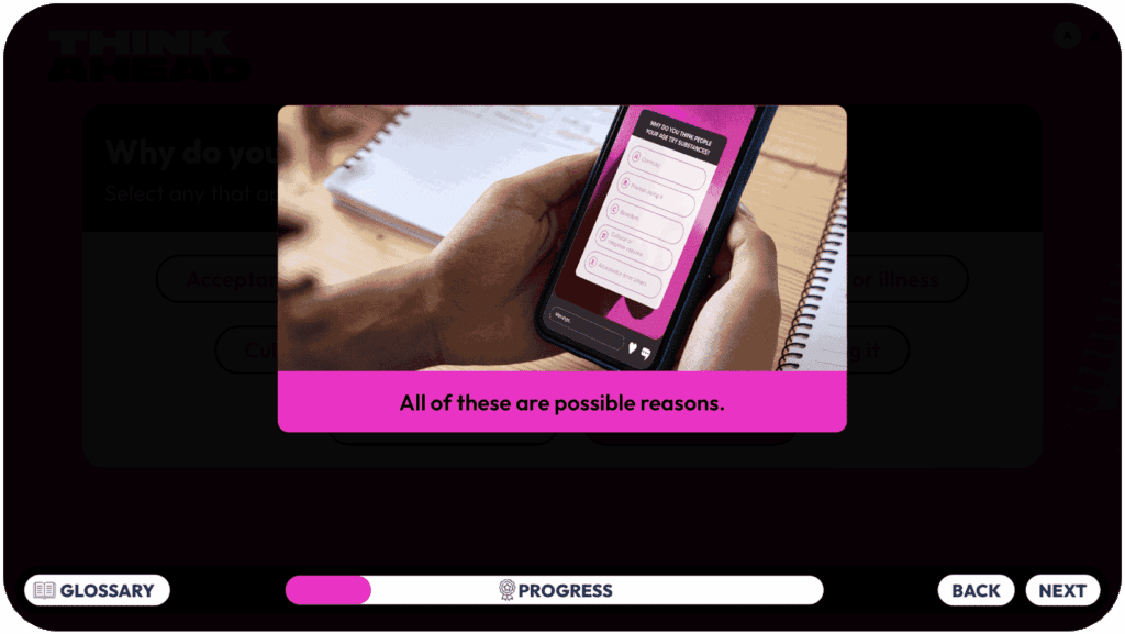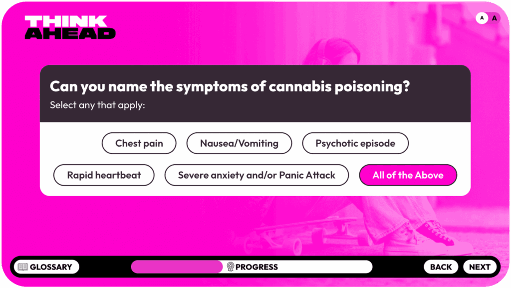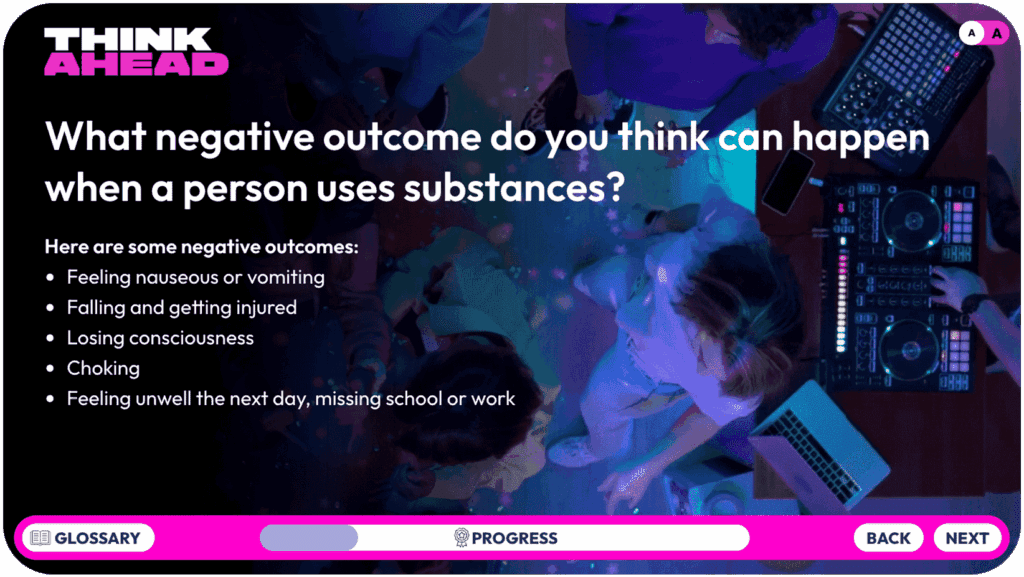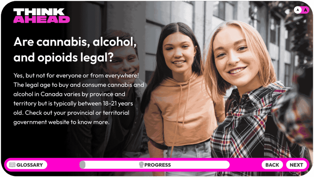 Think Ahead: Know the Risks of Substance Use is a program launched by Health Canada to talk about the risks of substance use to help youth make informed decisions.