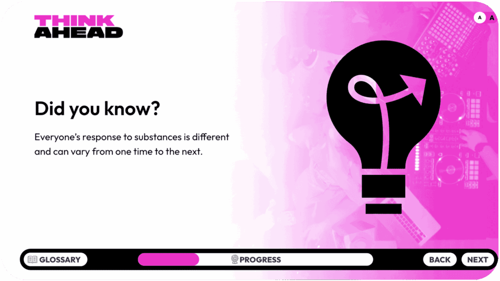 Did you know? Everyone’s response to substances is different and can vary from one time to the next.