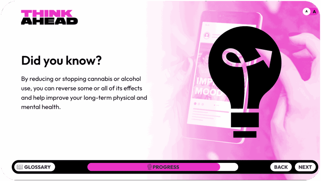 Did you know? By reducing or stopping cannabis or alcohol use, you can reverse some or all of its effects and help improve your long-term physical and mental health.